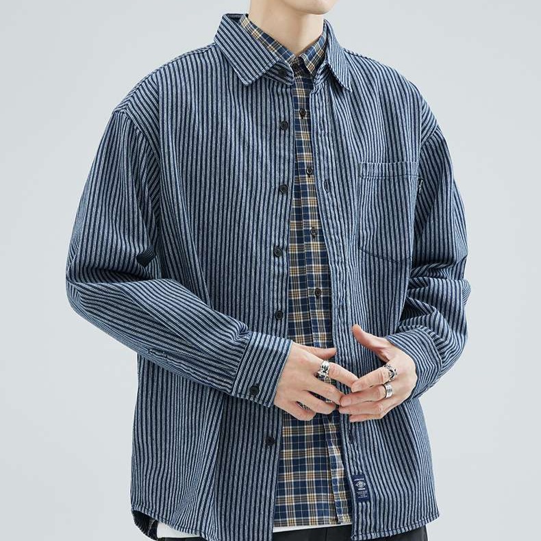 冬の着こなしを彩るカジュアルストライプシャツ