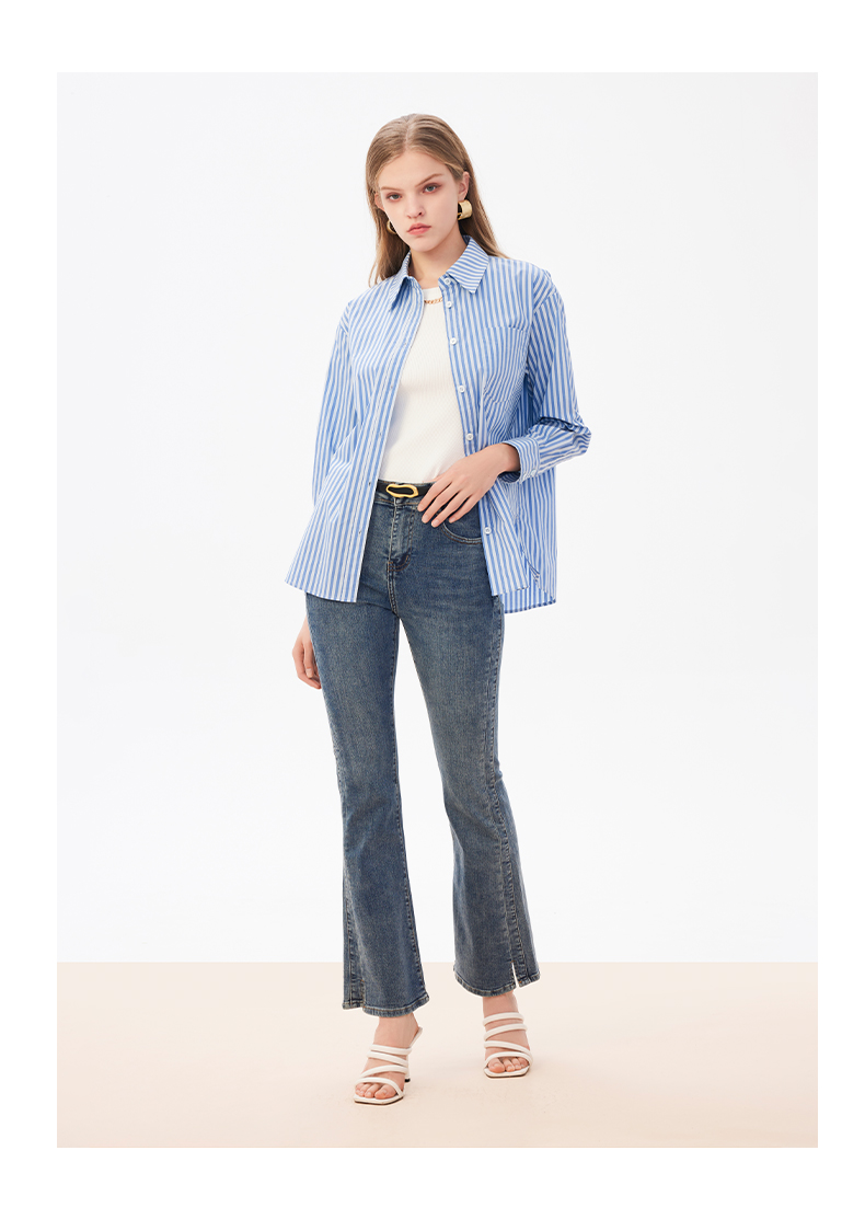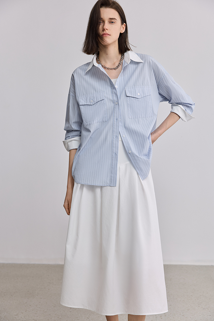 立体的なプリーツ加工が施されたメンズストライプシャツは、洗練された印象を与える一枚。軽やかな素材感が心地よく、カジュアルからビジネスシーンまで幅広く活躍します。ストライプデザインがスタイリッシュなメンズコーデを演出し、シンプルながらも個性を引き立てるアイテムです。